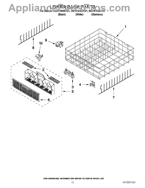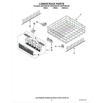 Parts for Whirlpool WDT910SSYW1: 10 - Lower Rack Parts