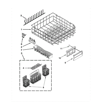 • Holds and separates silverware and small utensils so water and detergent can reach each piece