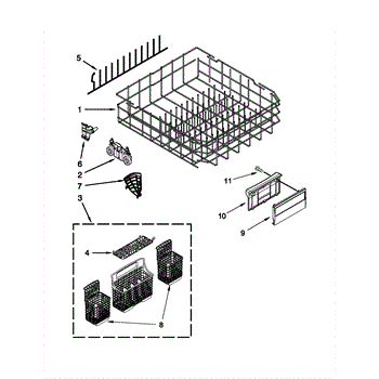 This silverware basket replaces a cracked, broken, or missing utensil holder to keep forks, knives and spoons organized during the wash cycle. It fits into the dishwasher's lower rack and helps maintain cleaning efficiency. What it does