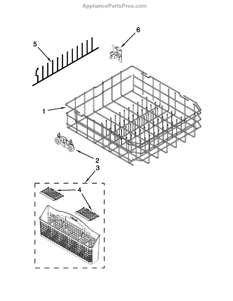 This replacement silverware basket sits in the dishwasher rack and keeps forks, knives, and spoons upright and contained so they wash thoroughly and don't slip through the rack or interfere with spray-arm movement. What it does: