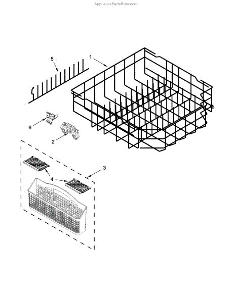 This replacement silverware basket sits in the dishwasher rack and keeps forks, knives, and spoons upright and contained so they wash thoroughly and don't slip through the rack or interfere with spray-arm movement. What it does: