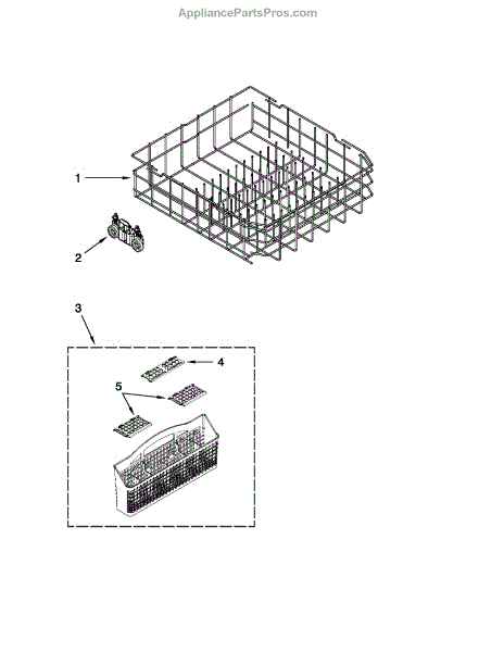 This replacement silverware basket sits in the dishwasher rack and keeps forks, knives, and spoons upright and contained so they wash thoroughly and don't slip through the rack or interfere with spray-arm movement. What it does: