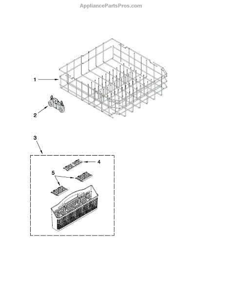 This replacement silverware basket sits in the dishwasher rack and keeps forks, knives, and spoons upright and contained so they wash thoroughly and don't slip through the rack or interfere with spray-arm movement. What it does: