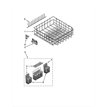 The Silverware Basket is an OEM part for Whirlpool dishwashers. It is designed to securely hold silverware and other utensils during the washing cycle, preventing them from scattering throughout the dishwasher.
