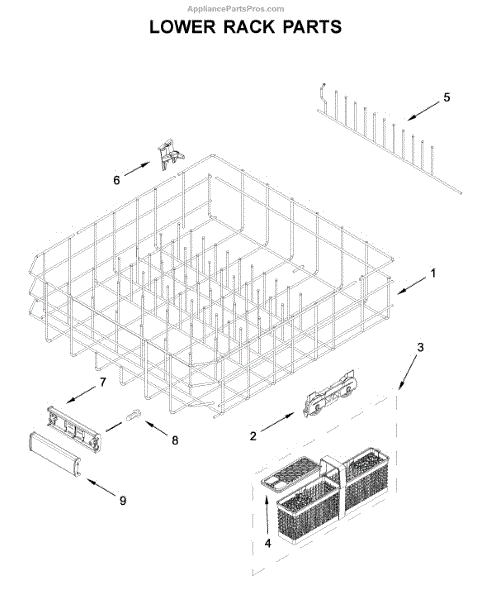 The Lower Dishrack is an OEM replacement part for Whirlpool dishwashers. It is a crucial component that holds and organizes dishes, pots, and pans during the dishwashing cycle, ensuring proper cleaning and preventing damage.