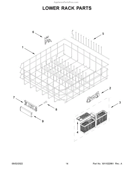 This is the dishwasher silverware basket that organizes and secures utensils in the lower rack for effective spray coverage. Replace a cracked, warped, or missing basket to restore proper loading, protect small items, and maintain consistent cleaning results. What it does: