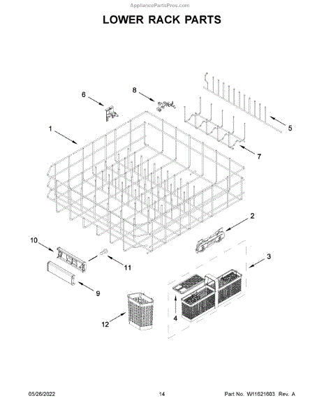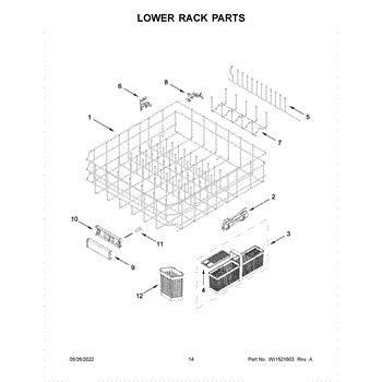 The Lower Dishrack is an OEM part for Whirlpool dishwashers. It provides space for arranging and securely holding your dishes during the dishwashing cycle.