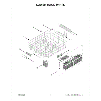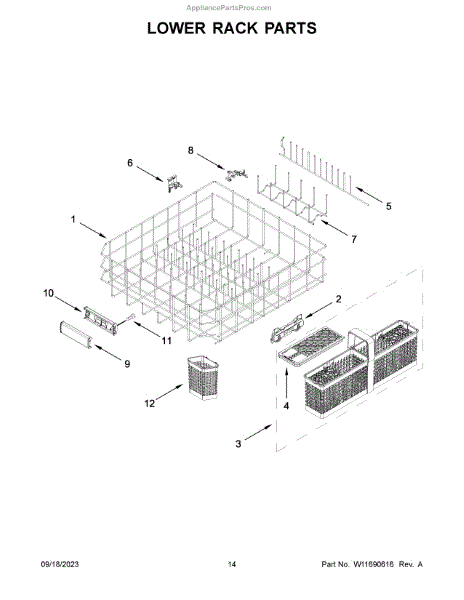 The Lower Dishrack is an OEM part for Whirlpool dishwashers. It provides space for arranging and securely holding your dishes during the dishwashing cycle.