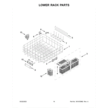 The Lower Dishrack is an OEM part for Whirlpool dishwashers. It provides space for arranging and securely holding your dishes during the dishwashing cycle.