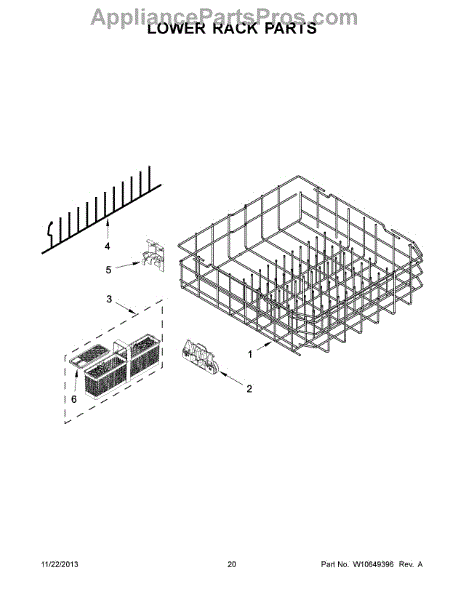 Parts for Kitchenaid KDTE104DWH0: 11 - Lower Rack Parts