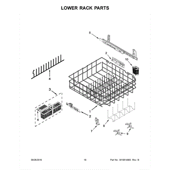 Parts for Kitchenaid KDTE254EBL1: 10 - Lower Rack Parts