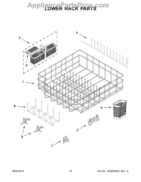 The Lower Dishrack is an OEM part for Whirlpool dishwashers. It provides space for arranging and securely holding your dishes during the dishwashing cycle.