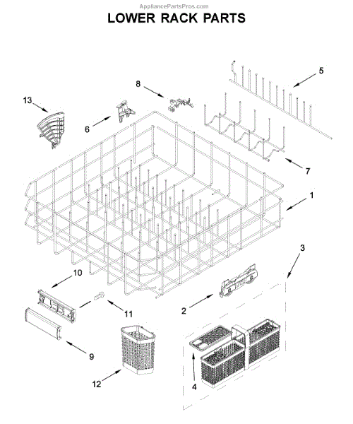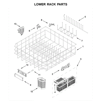 The Lower Dishrack is an OEM part for Whirlpool dishwashers. It provides space for arranging and securely holding your dishes during the dishwashing cycle.