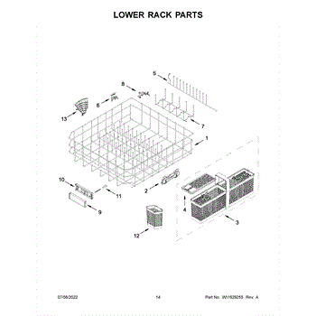 The Lower Dishrack is an OEM part for Whirlpool dishwashers. It provides space for arranging and securely holding your dishes during the dishwashing cycle.