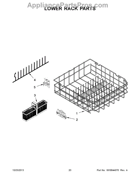 The Lower Dishrack is an OEM replacement part for Whirlpool dishwashers. It is a crucial component that holds and organizes dishes, pots, and pans during the dishwashing cycle, ensuring proper cleaning and preventing damage.