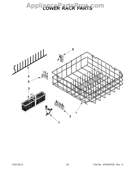 • Supports and pivots the fold-down tine row on the lower dishrack