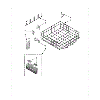 The Silverware Basket is an OEM part for Whirlpool dishwashers. It provides a designated area for organizing and holding silverware and small utensils during the washing cycle, ensuring they are thoroughly cleaned and properly dried. It measures approximately 5 inches wide, 9 inches high, and 20 inches deep. I