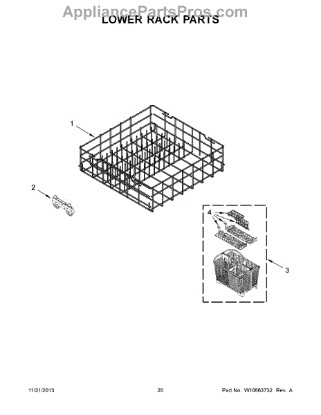 This replacement lower dishrack restores the main loading surface in your dishwasher so dishes sit securely and spray reaches them for better cleaning. It replaces a cracked, rusted, or misshapen rack to help protect dishes and keep loading organized. What it does