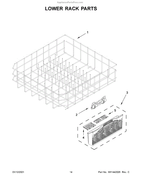 This replacement lower dishrack restores the main loading surface in your dishwasher so dishes sit securely and spray reaches them for better cleaning. It replaces a cracked, rusted, or misshapen rack to help protect dishes and keep loading organized. What it does