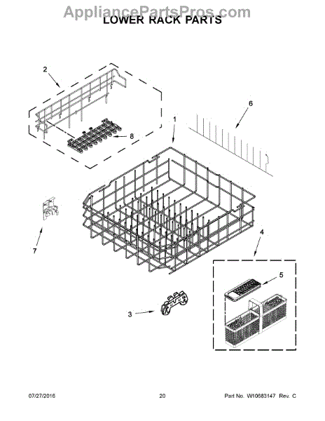 Causes of a bad Lower Dishrack Wheel Assembly can range from normal wear and tear, which can lead to the degradation of the wheel material or the loosening of the mount, to overloading the dishrack, which puts excess pressure on the wheels and their attachments.