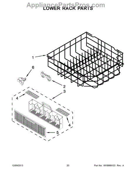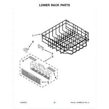 The Lower Dishwasher Rack Assembly is an OEM part for Whirlpool dishwashers. This part holds and organizes dishes, pots, and pans in the lower section of the dishwasher, ensuring they are properly positioned for effective cleaning.