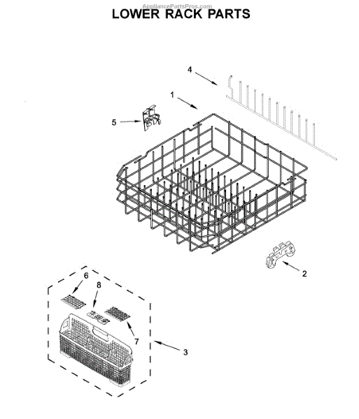 This dishrack replaces a damaged or rusted rack in your dishwasher. Restoring a true-to-spec rack keeps plates, bowls, and cookware secure and properly spaced so the machine can clean effectively and the rack moves smoothly on its tracks. What it does:
