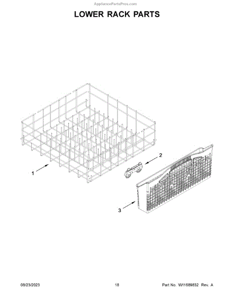 Parts for Whirlpool WDF332PAMS0: Lower Rack Parts