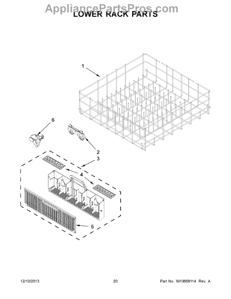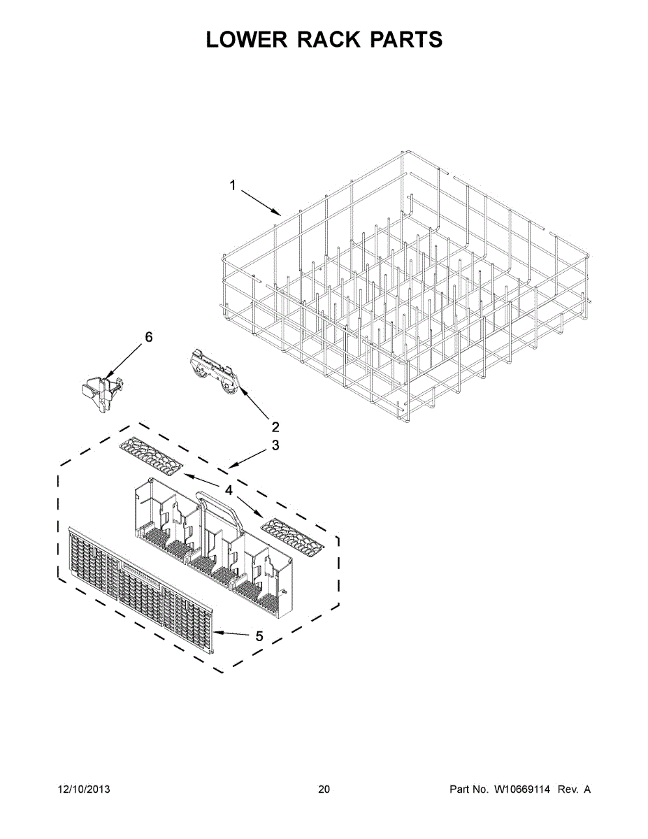 The Lower Dishwasher Rack Assembly is an OEM part for Whirlpool dishwashers. This part holds and organizes dishes, pots, and pans in the lower section of the dishwasher, ensuring they are properly positioned for effective cleaning.