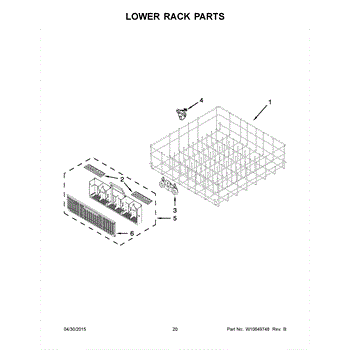 The Lower Dishwasher Rack Assembly is an OEM part for Whirlpool dishwashers. This part holds and organizes dishes, pots, and pans in the lower section of the dishwasher, ensuring they are properly positioned for effective cleaning.