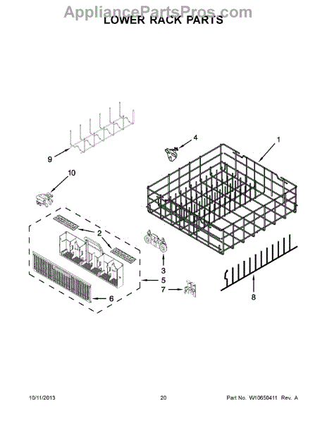 This lower dishrack restores secure, smooth loading on your dishwasher's bottom level. Replace a bent, rusted, or broken rack to keep dishes stable and prevent items from catching the spray arm during the wash.