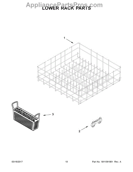 Replacement silverware basket for dishwasher lower rack. Holds utensils securely during wash cycles. Replace if cracked, warped, damaged, or missing.