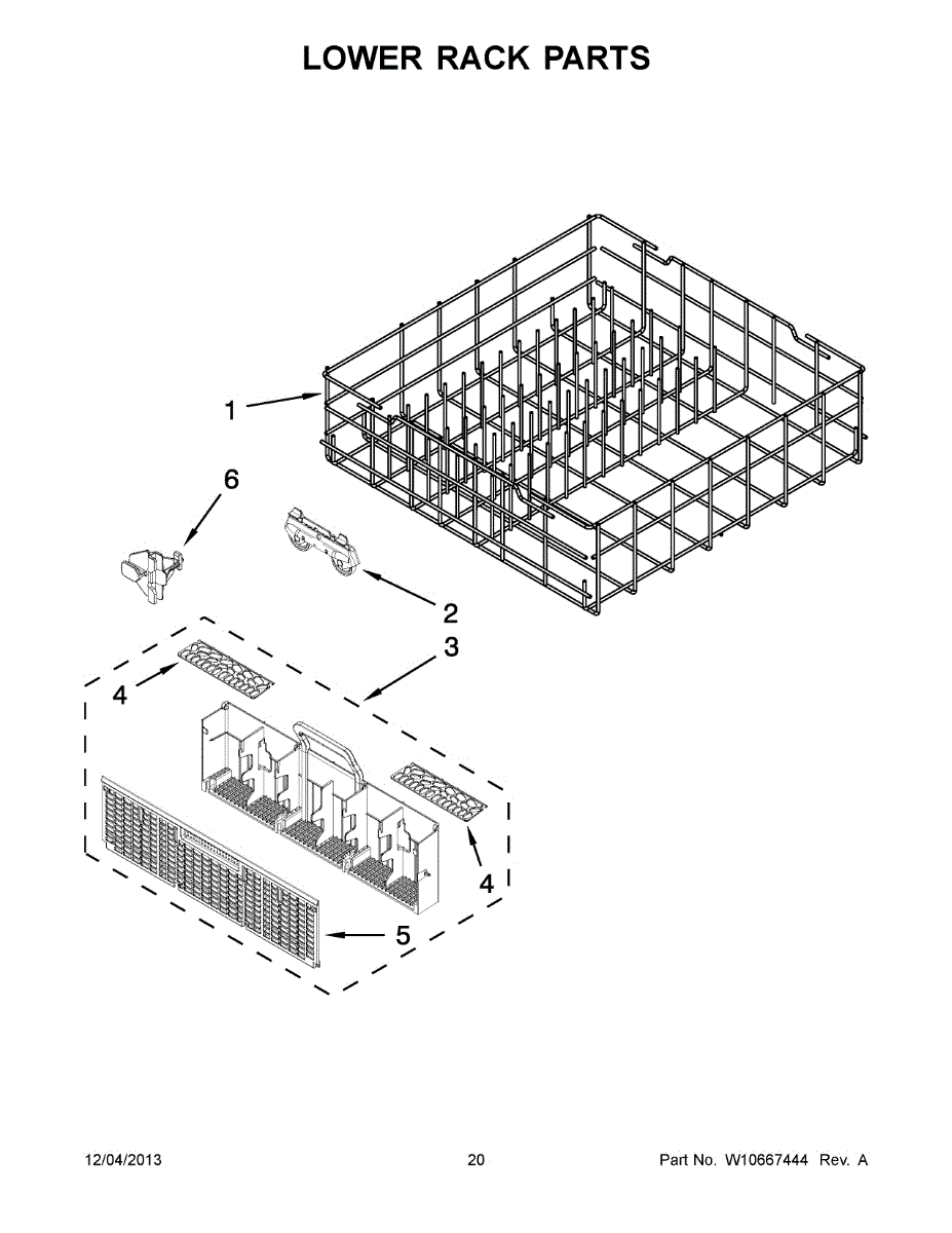 The Lower Dishwasher Rack Assembly is an OEM part for Whirlpool dishwashers. This part holds and organizes dishes, pots, and pans in the lower section of the dishwasher, ensuring they are properly positioned for effective cleaning.