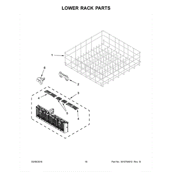 The Lower Dishwasher Rack Assembly is an OEM part for Whirlpool dishwashers. This part holds and organizes dishes, pots, and pans in the lower section of the dishwasher, ensuring they are properly positioned for effective cleaning.