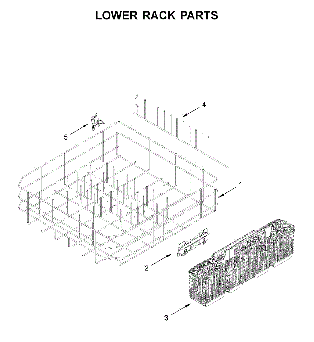 Replacement lower dishrack for dishwashers. Holds dishes, pots, and pans during wash cycles. Replace if cracked, rusted, or tines are broken or missing.