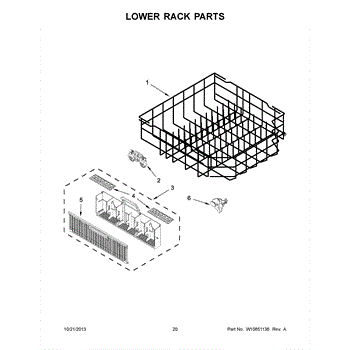 Lower dishrack assembly for dishwashers. Holds dishes, pots, and pans in the bottom section. Replace when rusted, cracked, or coating is worn or peeling.