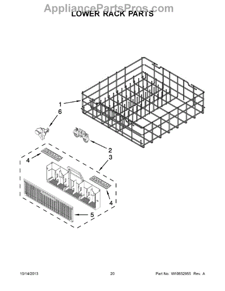 The Lower Dishwasher Rack Assembly is an OEM part for Whirlpool dishwashers. This part holds and organizes dishes, pots, and pans in the lower section of the dishwasher, ensuring they are properly positioned for effective cleaning.