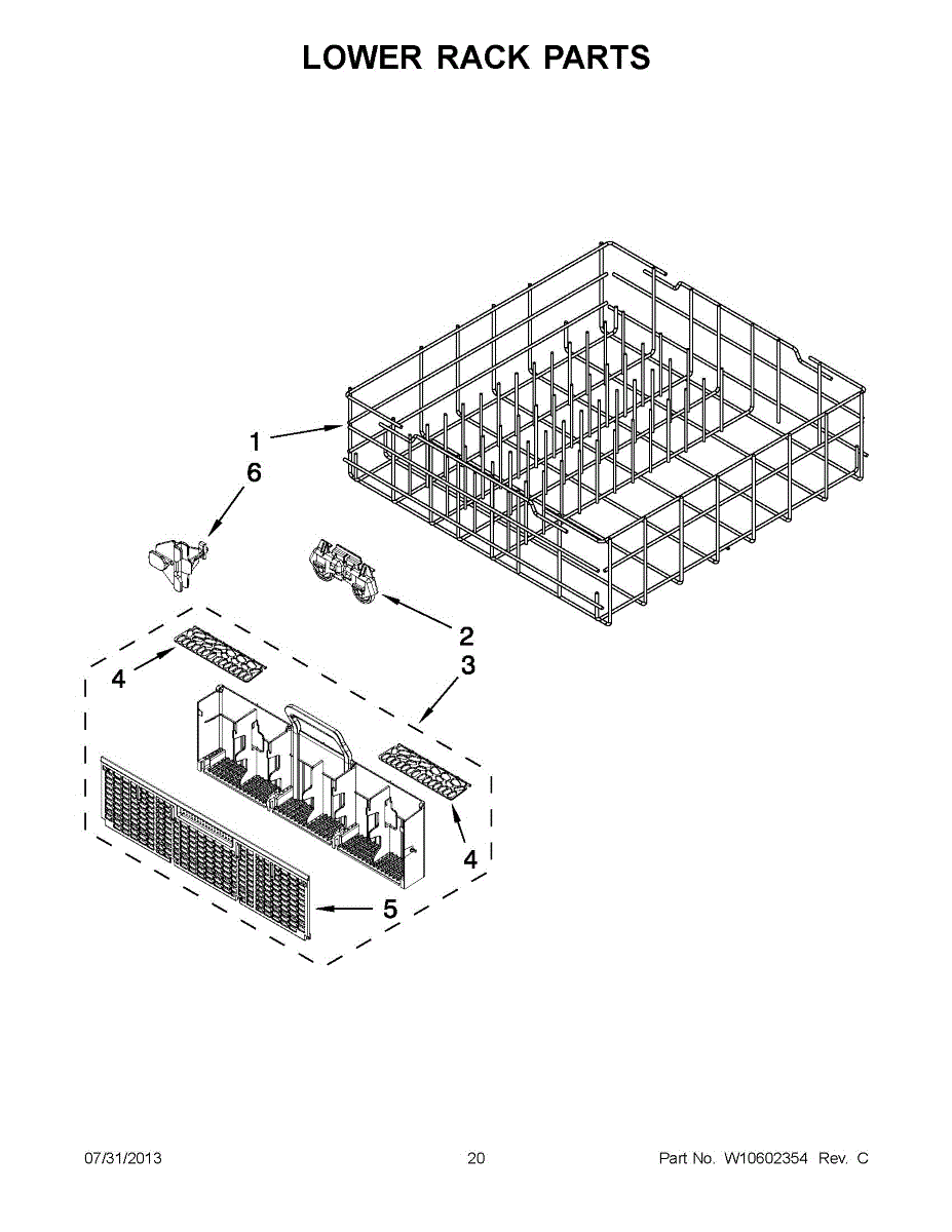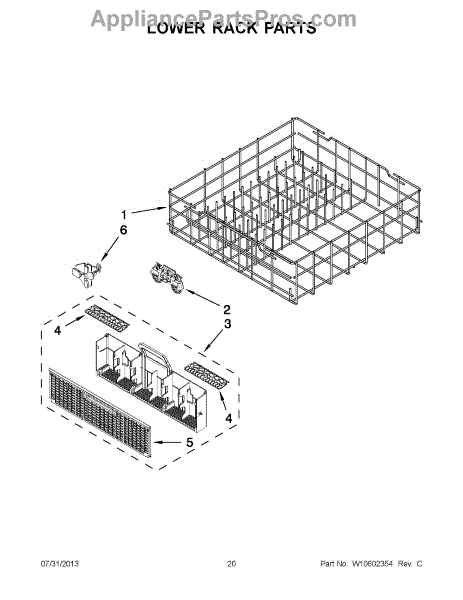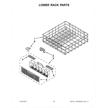 The Lower Dishwasher Rack Assembly is an OEM part for Whirlpool dishwashers. This part holds and organizes dishes, pots, and pans in the lower section of the dishwasher, ensuring they are properly positioned for effective cleaning.