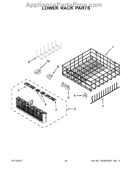 This lower dishrack restores secure, smooth loading on your dishwasher's bottom level. Replace a bent, rusted, or broken rack to keep dishes stable and prevent items from catching the spray arm during the wash.