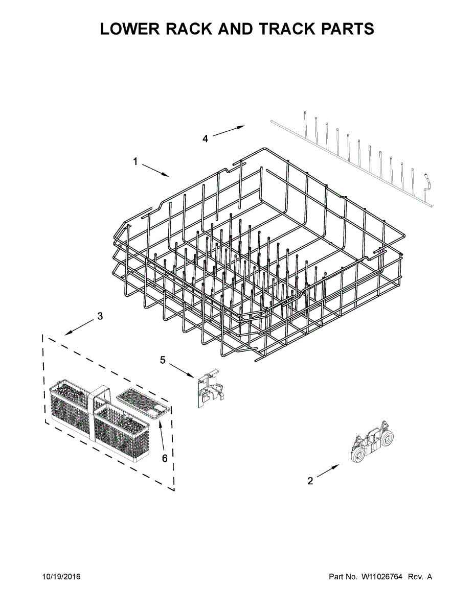 Replacement lower dishrack for your dishwasher. Installs in the bottom position to hold plates, bowls, and cookware. Replace if cracked, rusted, or damaged.