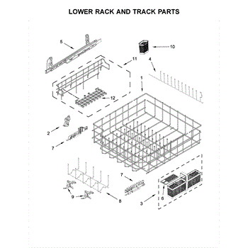 The Track Assembly is an OEM replacement part for Whirlpool dishwashers. As the guide rail that the lower rack rolls along, this track plays an essential role in properly positioning dishes within the unit. Causes of a faulty track can include normal wear from extended use, damage from heavy loads or impacts, or failures of the mounting brackets. Symptoms of a bad track include: