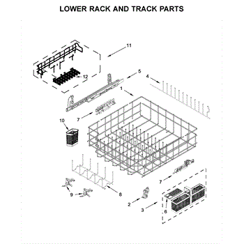The Track Assembly is an OEM replacement part for Whirlpool dishwashers. As the guide rail that the lower rack rolls along, this track plays an essential role in properly positioning dishes within the unit. Causes of a faulty track can include normal wear from extended use, damage from heavy loads or impacts, or failures of the mounting brackets. Symptoms of a bad track include: