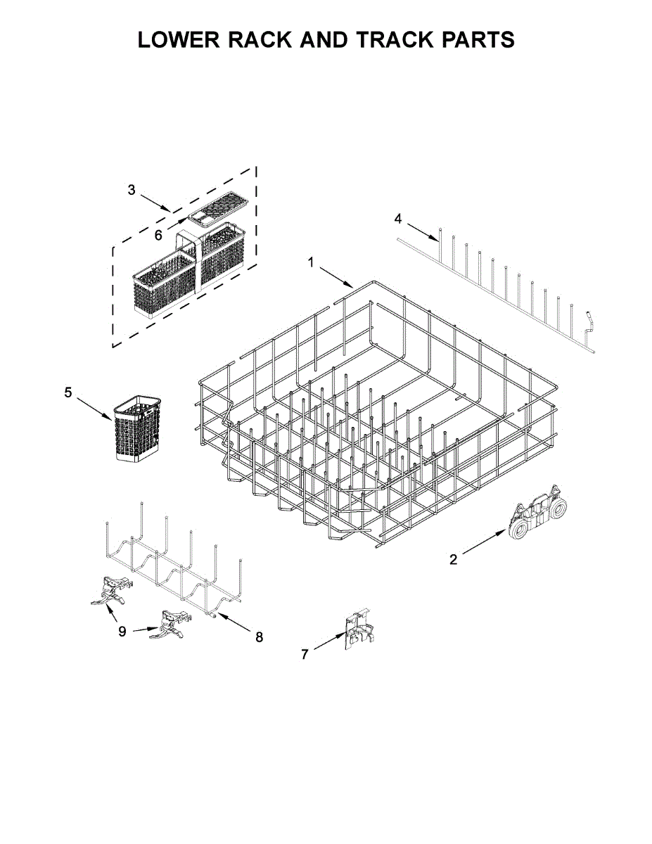 The Lower Dishrack is an OEM part for Whirlpool dishwashers. It provides space for arranging and securely holding your dishes during the dishwashing cycle.