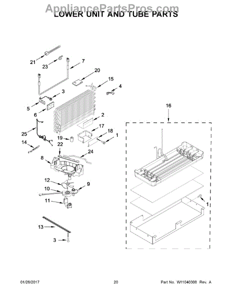 Parts for Kitchenaid KBFN406EPA01: 11 - Lower Unit And Tube Parts