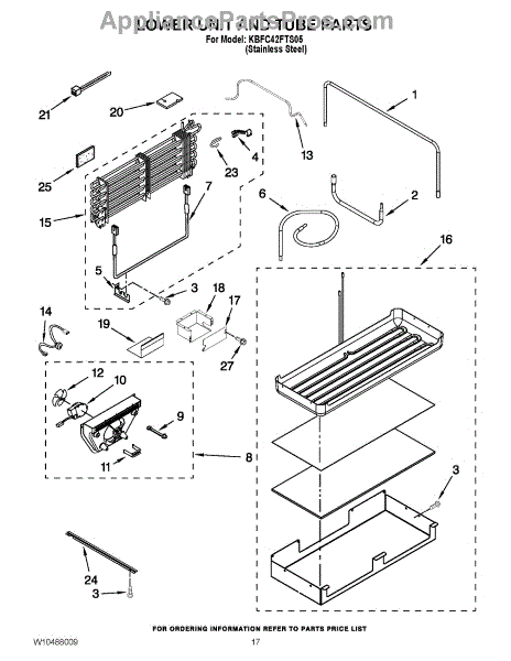 Parts for Kitchenaid KBFC42FTS05: 10 - Lower Unit And Tube Parts