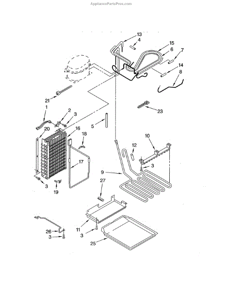 This drain pan heater keeps the refrigerator's drain area warm to prevent ice buildup and help melt frost so condensate can flow to the drain pan. It helps reduce standing water and drainage blockages caused by frozen drains. What it does: