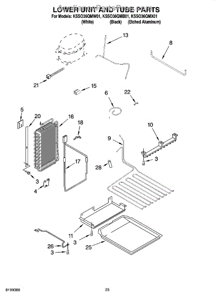 Parts for Kitchenaid KSSO36QMX01: 14 - Lower Unit And Tube Parts