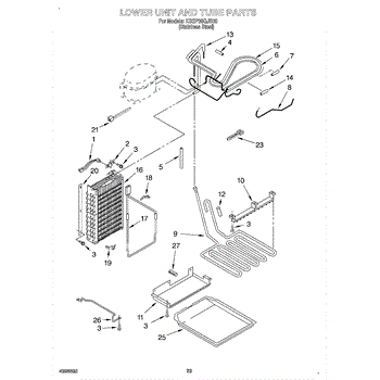 This drain pan heater keeps the refrigerator's drain area warm to prevent ice buildup and help melt frost so condensate can flow to the drain pan. It helps reduce standing water and drainage blockages caused by frozen drains. What it does: