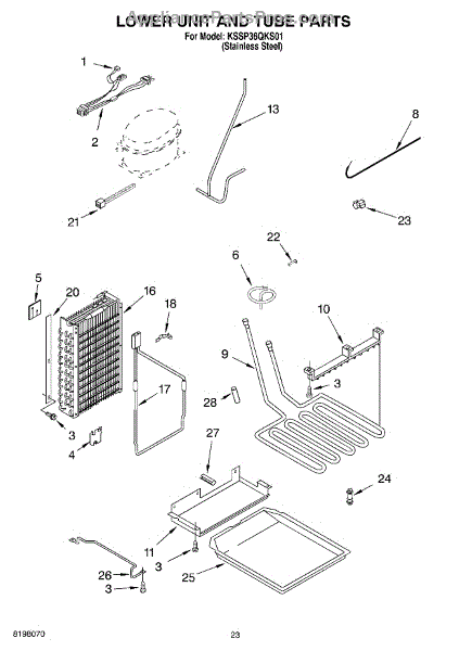 Parts for Kitchenaid KSSP36QKS01: 14 - Lower Unit And Tube Parts