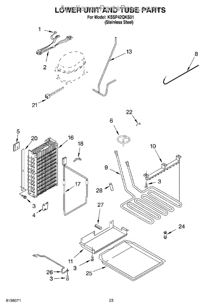 This part is a replacement evaporator made by Whirlpool and sourced directly from the manufacturer. This part can be used to replace a faulty or broken evaporator in a variety of different refrigerator models. The evaporator works to cool the refrigerator itself by acting as a heat exchanger. If this part is malfunctioning, the refrigerator likely will not be able to maintain cold temperatures or may stop working all together. In order to successfully repair this part, the refrigerant will need to be recovered and recharged within the sealed system. Always disconnect power from the appliance before starting any work or repairs. It is recommended that work gloves are worn to protect the hands. As an authentic replacement part, this evaporator is suitable for use on several different models of refrigerators that have been manufactured by Whirlpool, Maytag, Kitchenaid, and several other brands. This is a genuine part made of high-quality, durable materials and is sold individually.