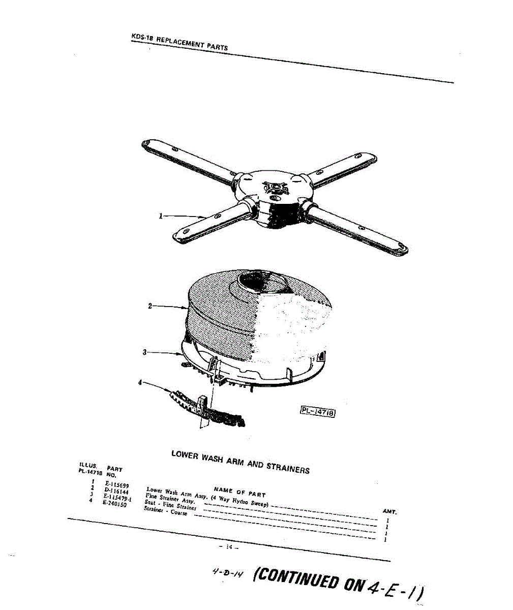Parts for Kitchenaid KDS18: 14 - Lower Wash Arm And Strainers Parts